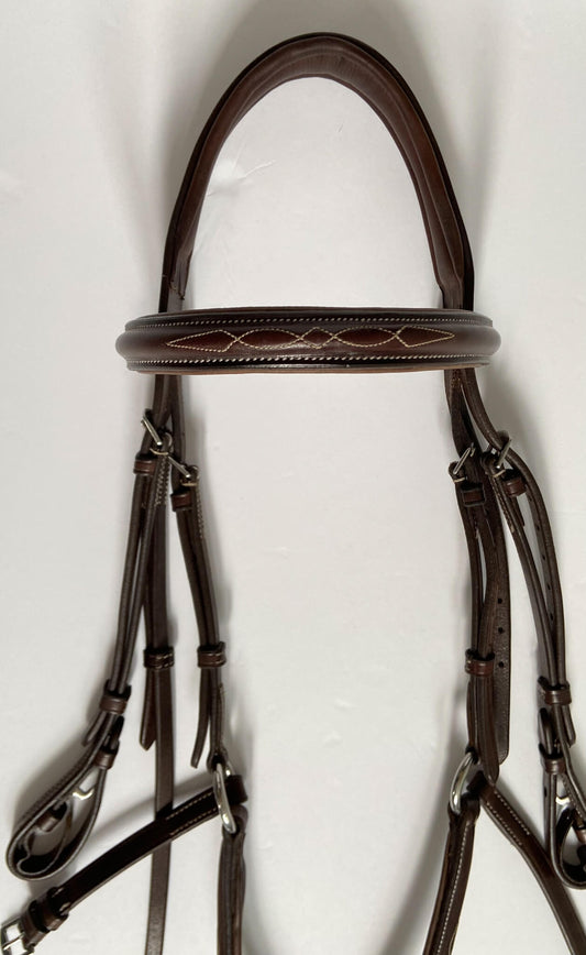 Vespucci Single Crown Fancy Raised Figure 8 Bridle - Dark Brown - Full