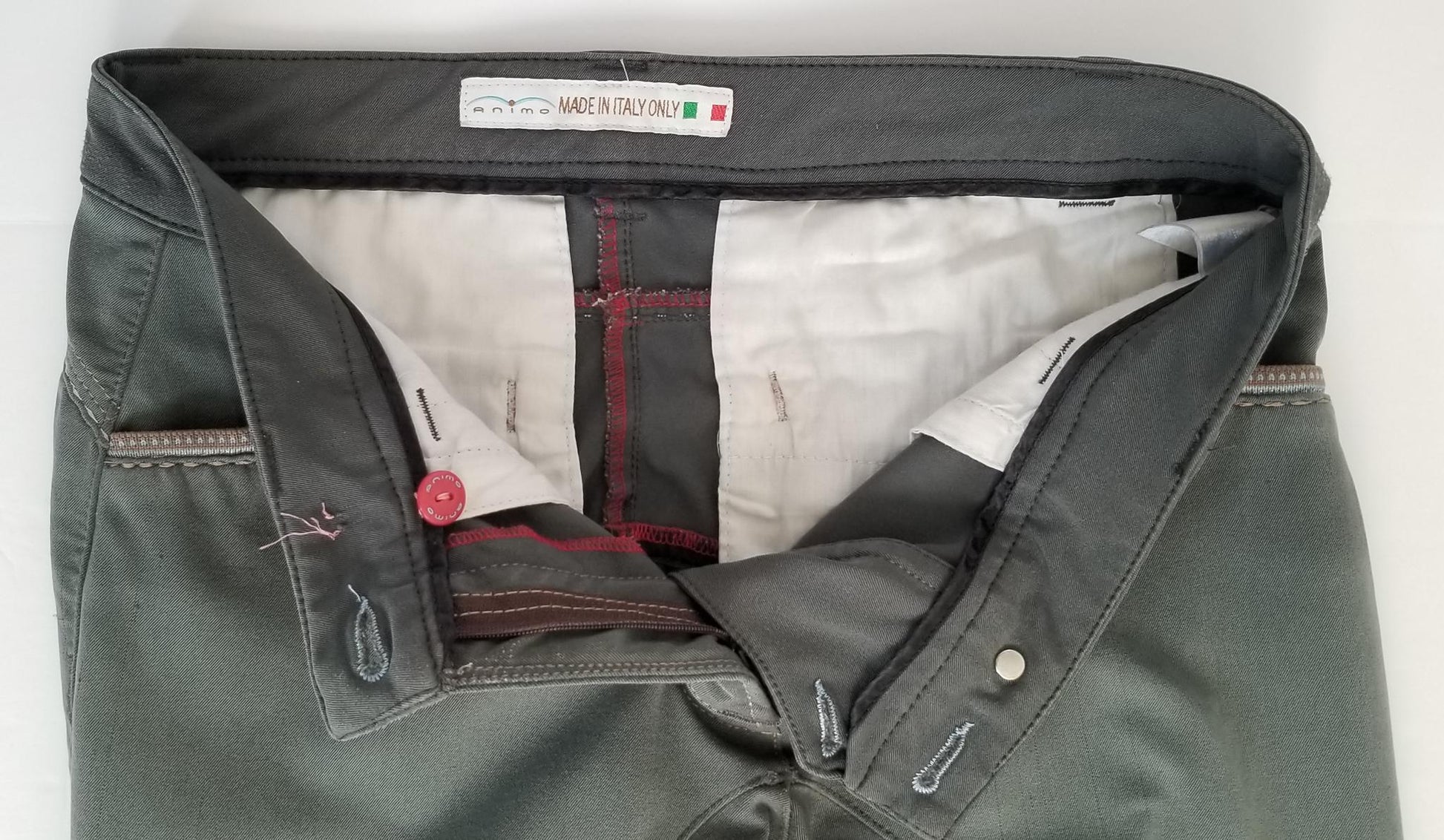 Quality-made Animo breeches. Sock bottoms with front and back pockets that have a fun embroidered design.