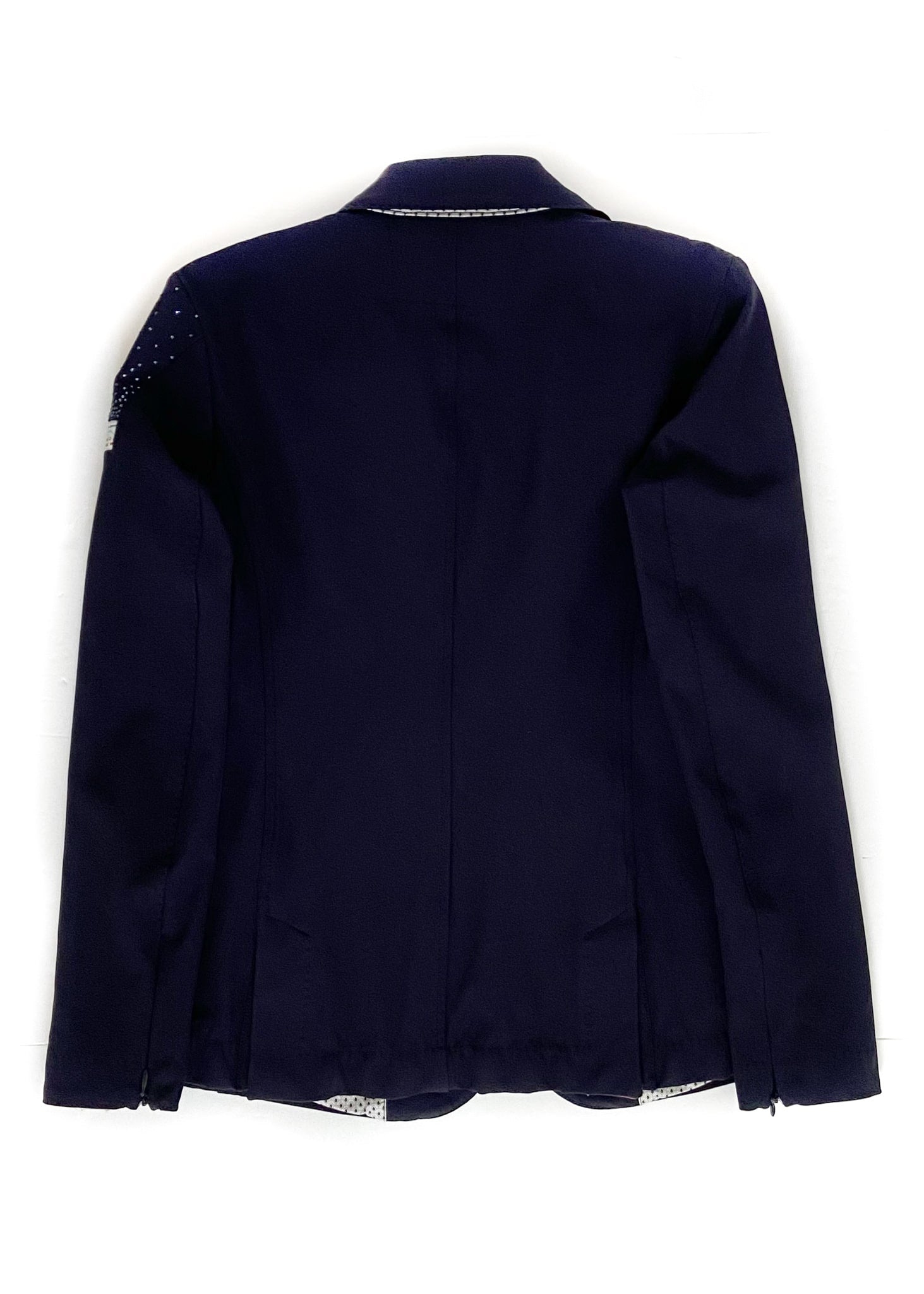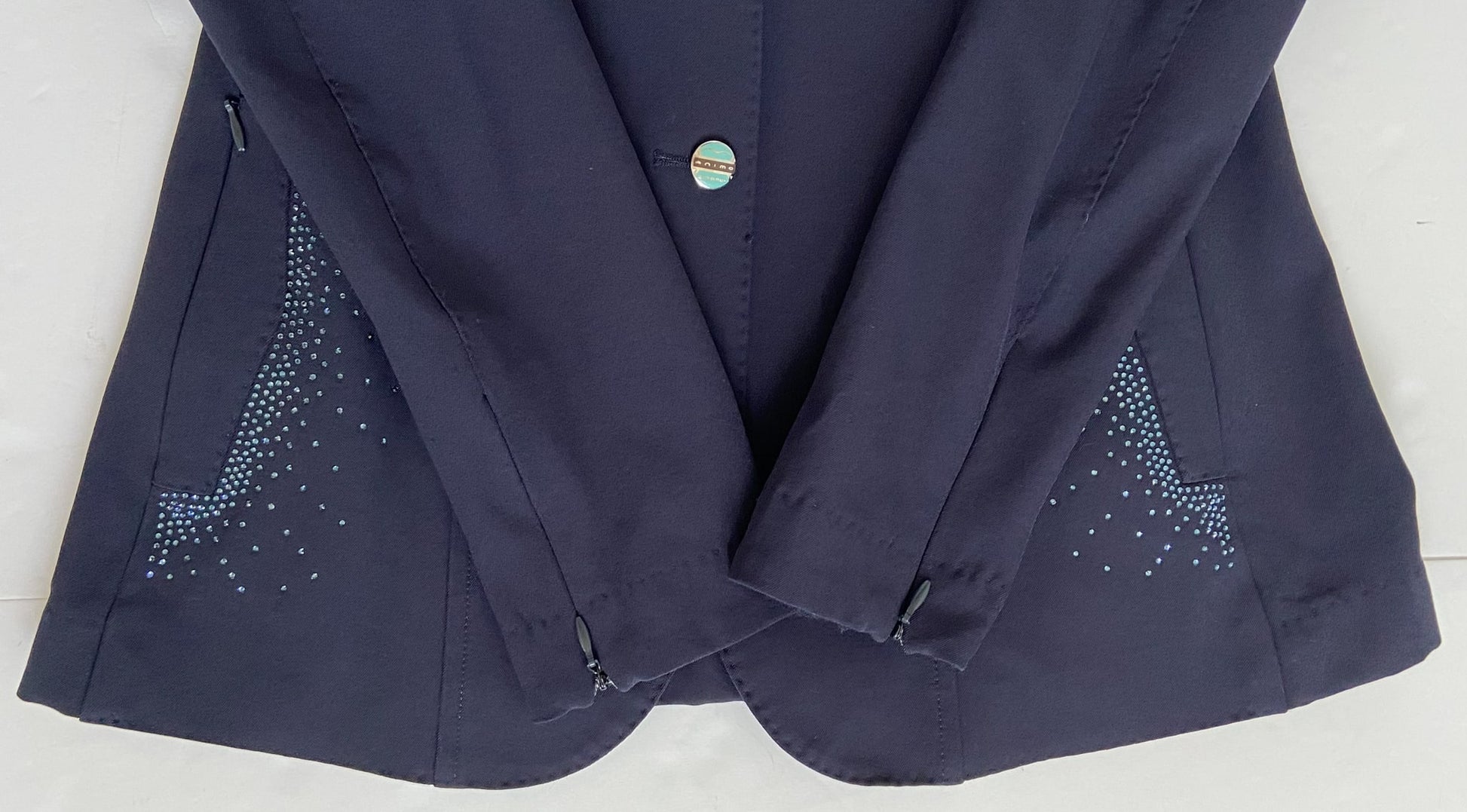 Gorgeous Animo jacket that features a slim fit design, front zipper, and just the right amount of sparkle!