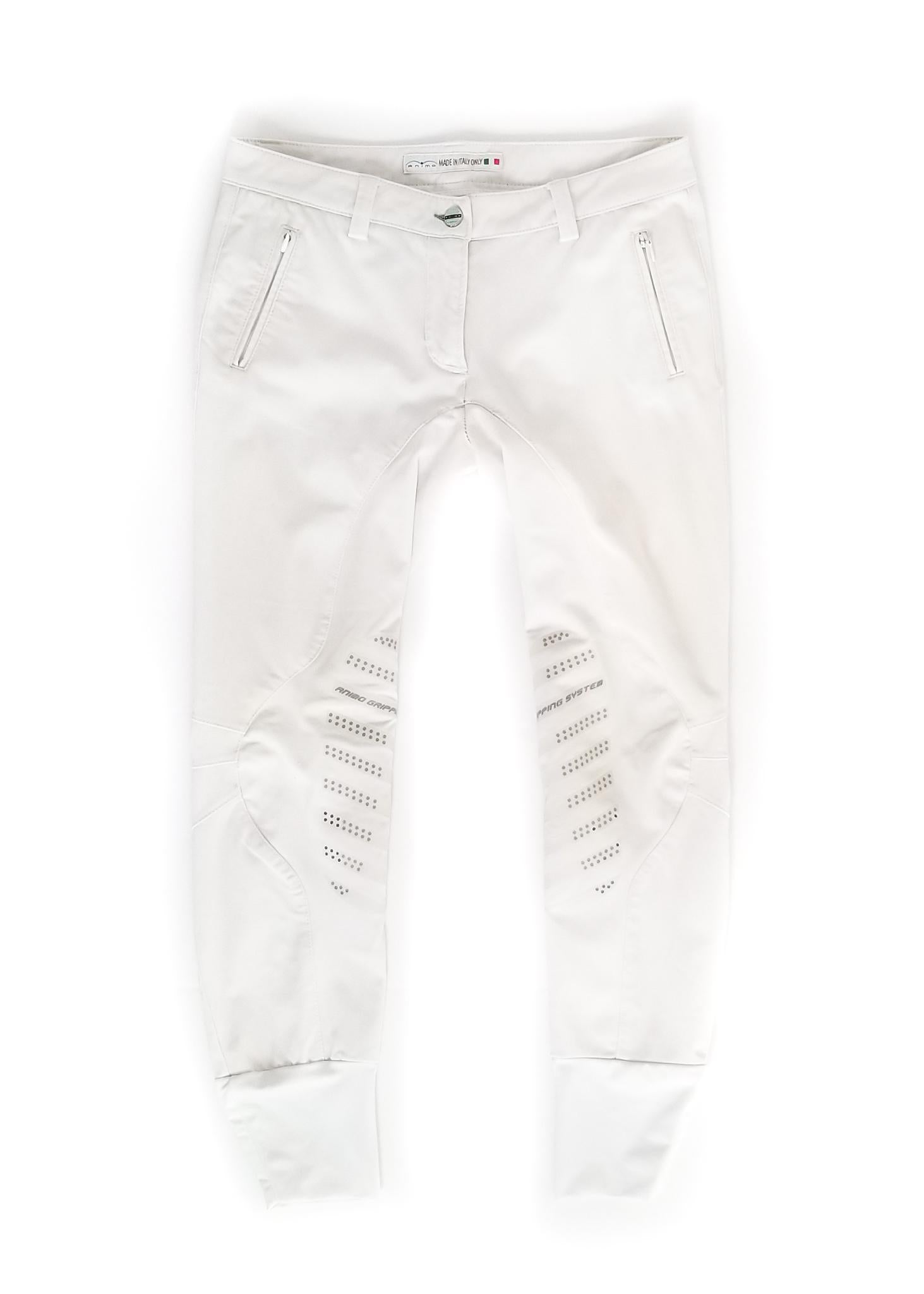 Beautiful Animo breeches ready for the jumper ring. Minimal design with silicone knee patches. Zippered pockets on front and back.
