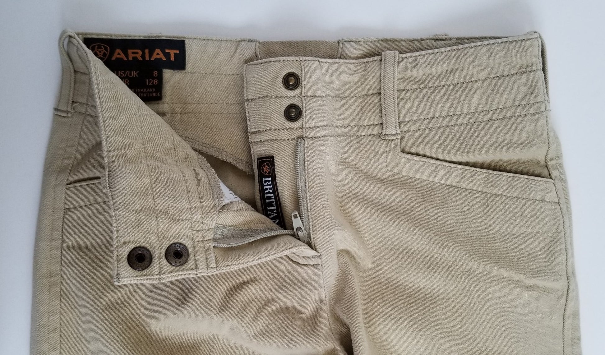 High quality Ariat jodhpurs with contrast knee patches. Does not come with jodhpur straps.