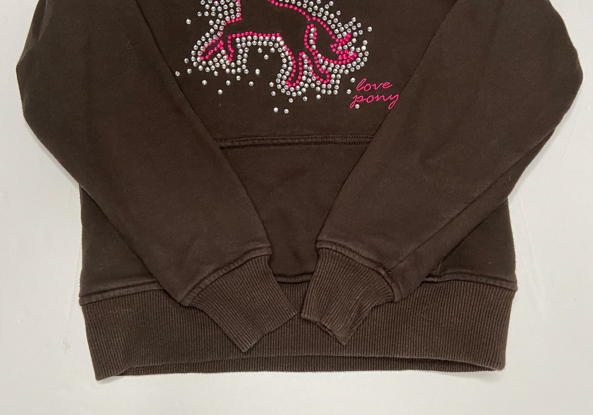 Pull over hoodie with rhinestone detailing.
