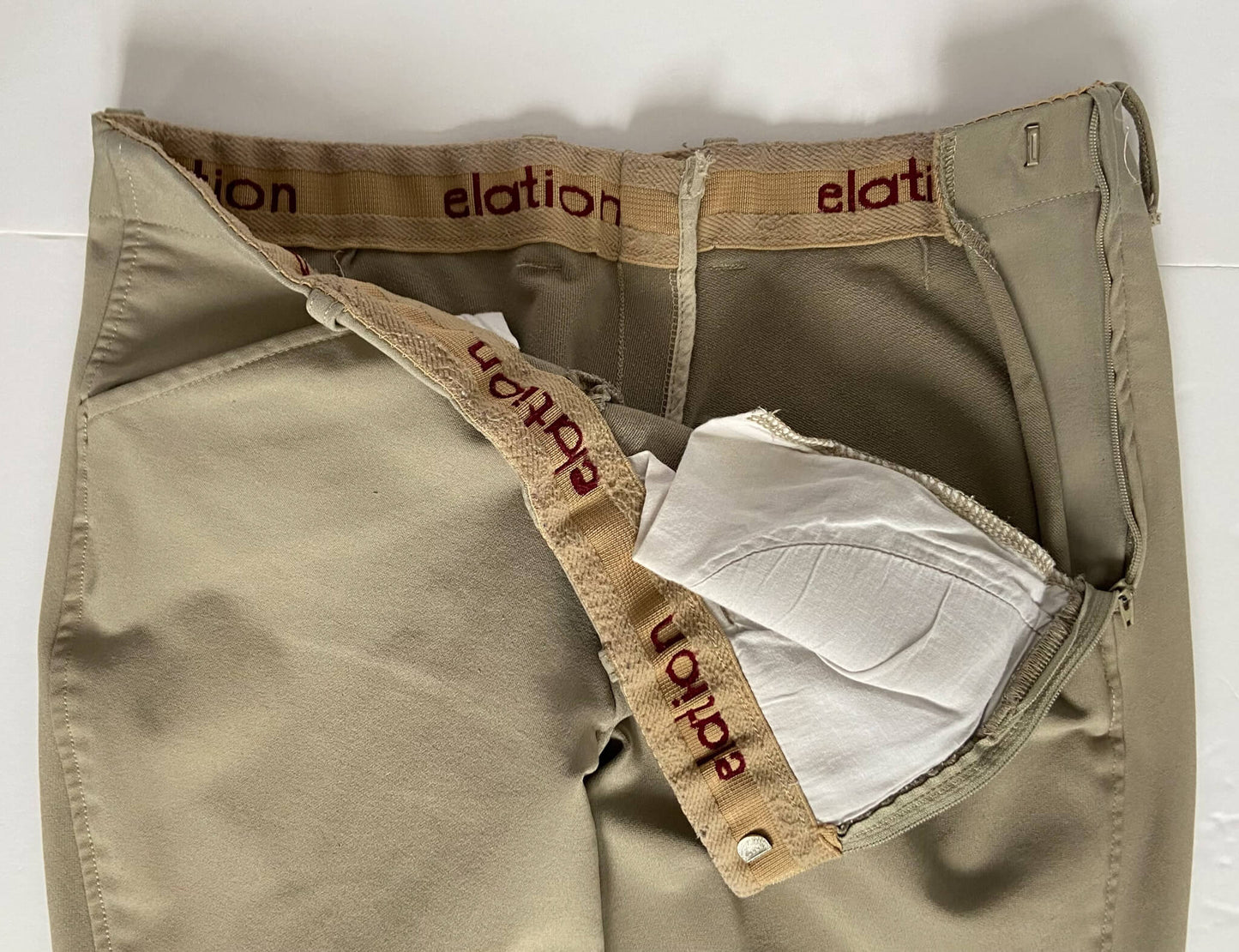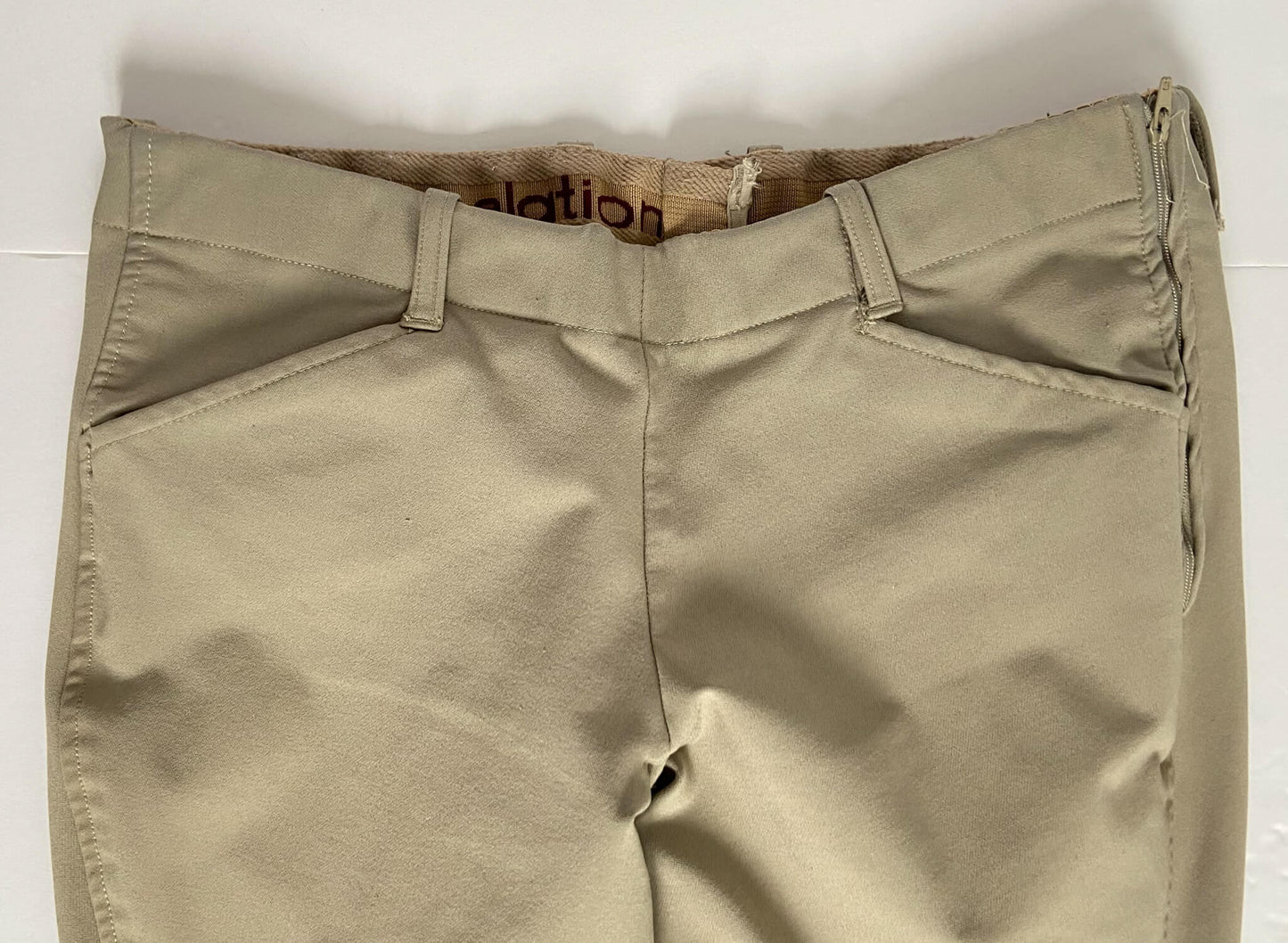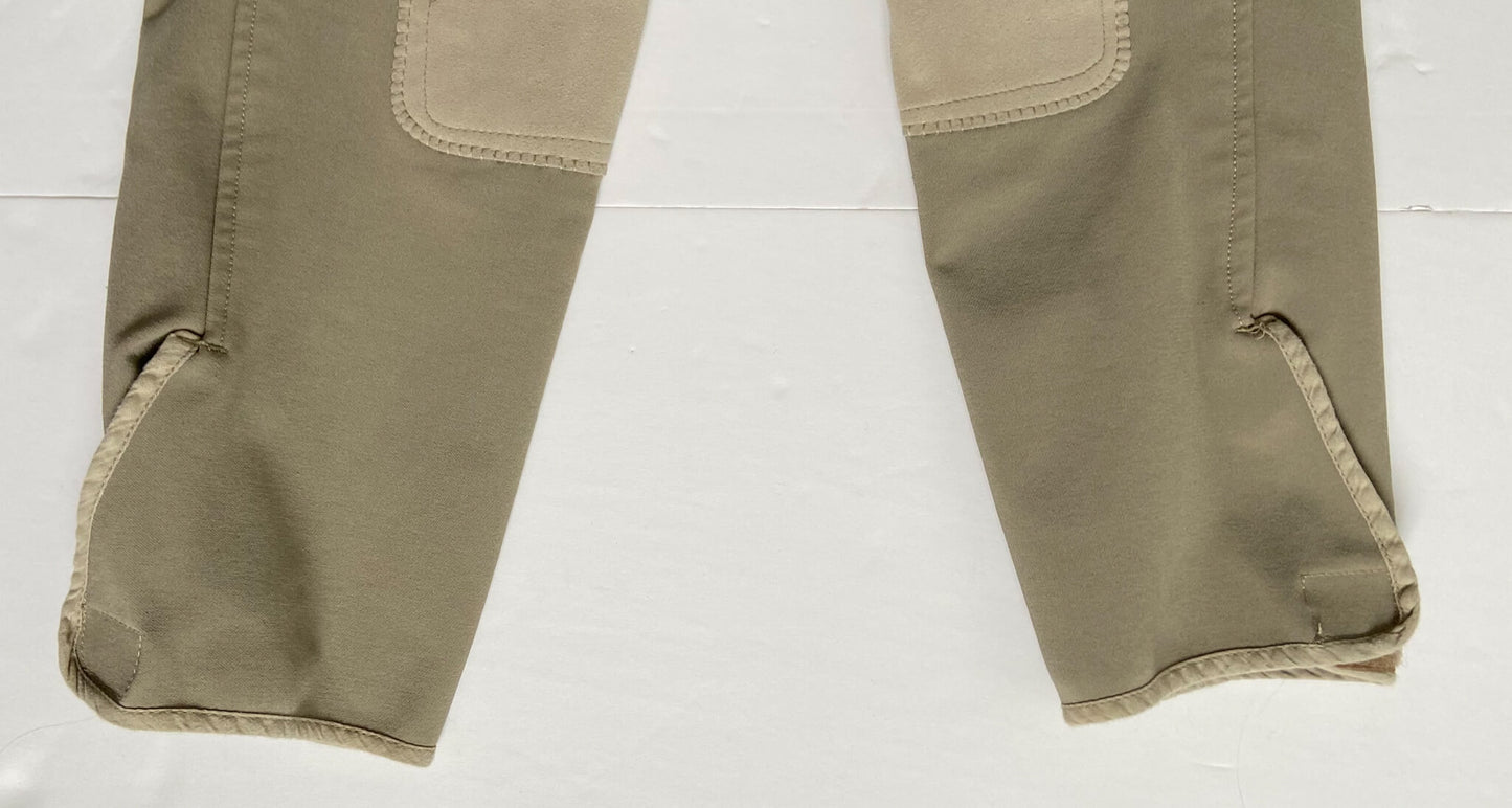 Great side zip breeches with tone on tone knee patched and velcro bottoms.