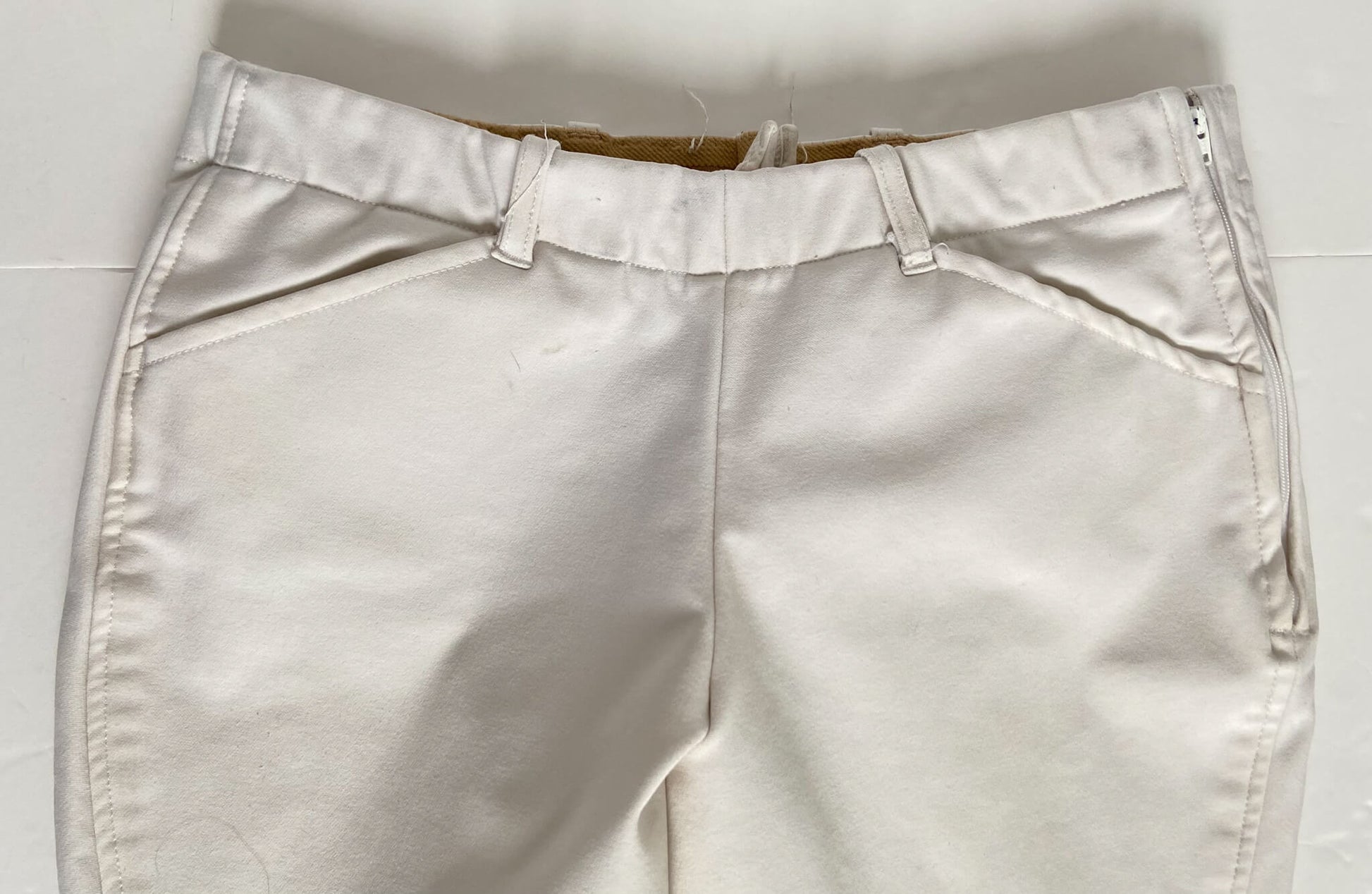 Classic white side zip breeches.