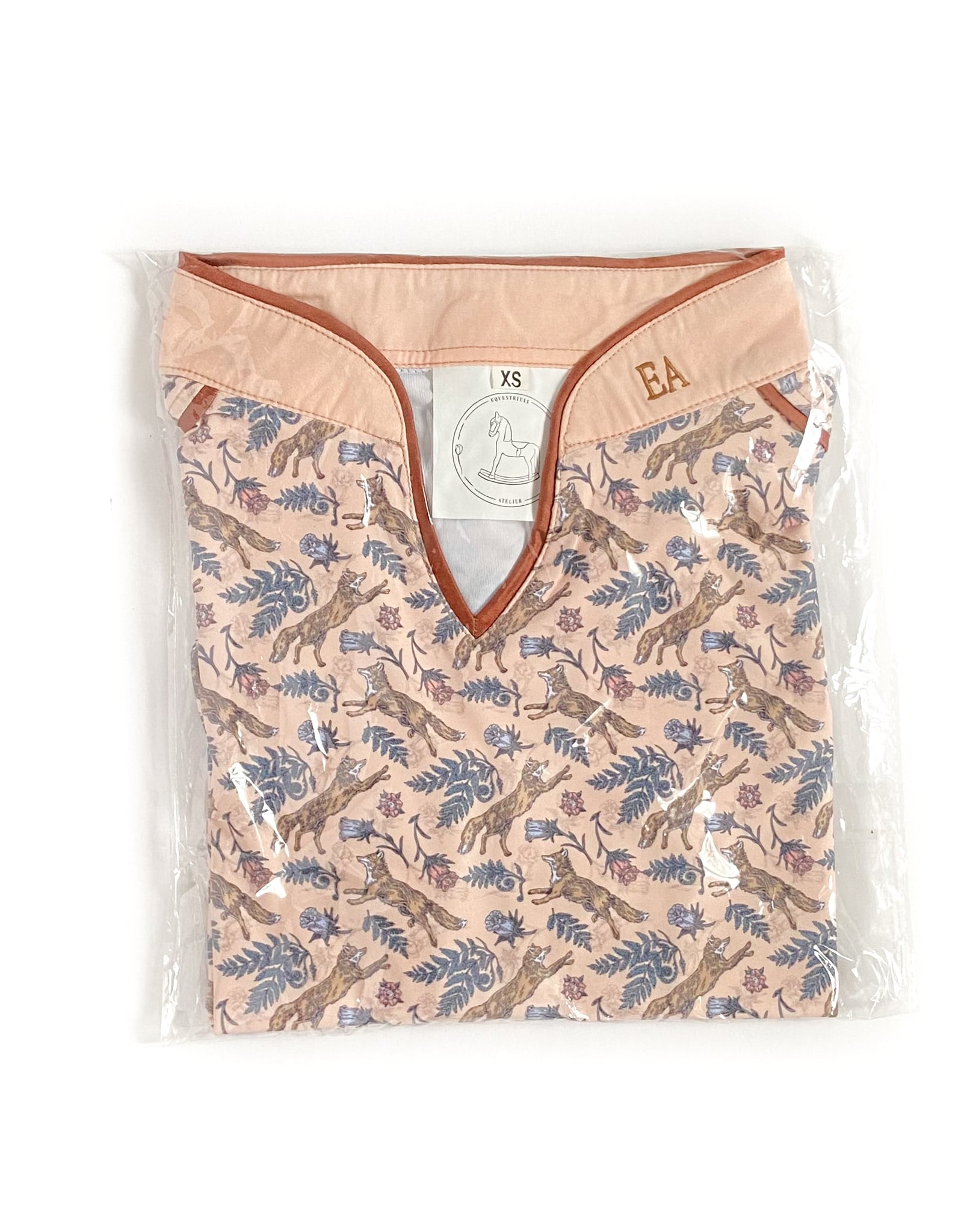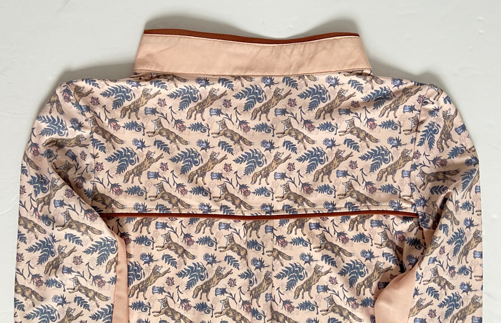 Beautiful sun shirt with a subtle fox print, mesh under arms, and made from a lightweight fabric.