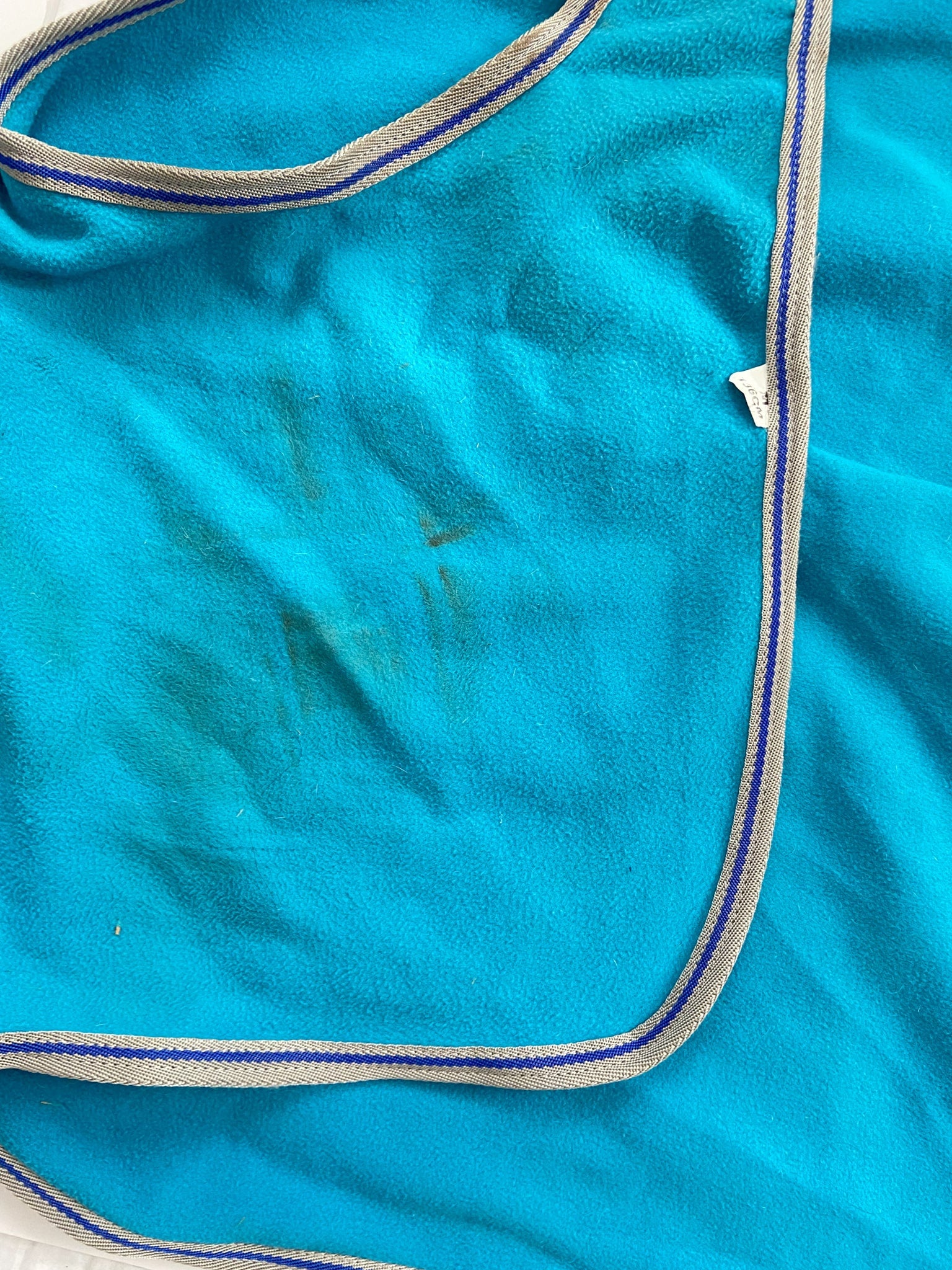 Classic fleece quarter sheet with grey and blue binding.