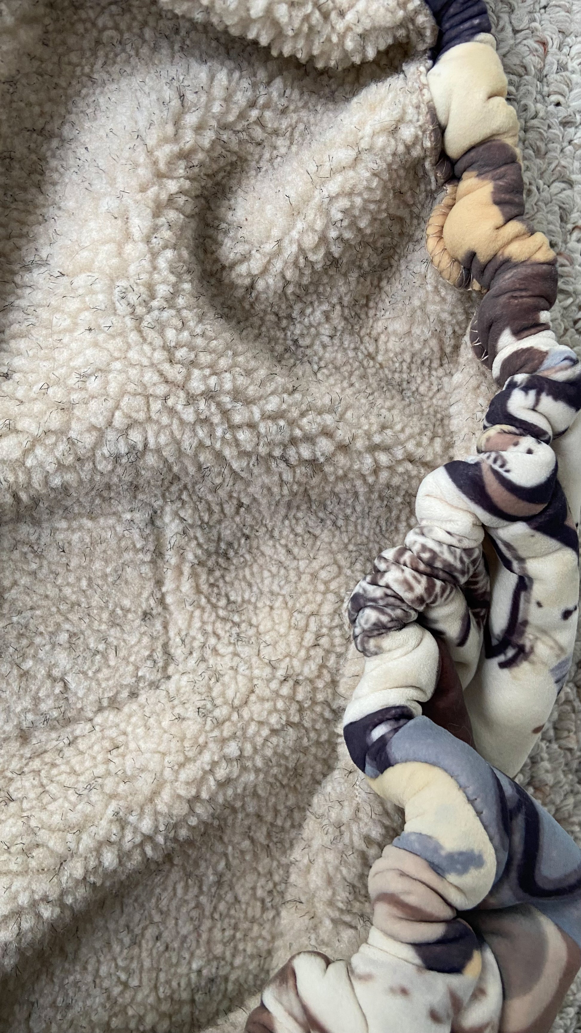 Made from premium microvelvet fabric and features a padded faux shearling inner fabric.