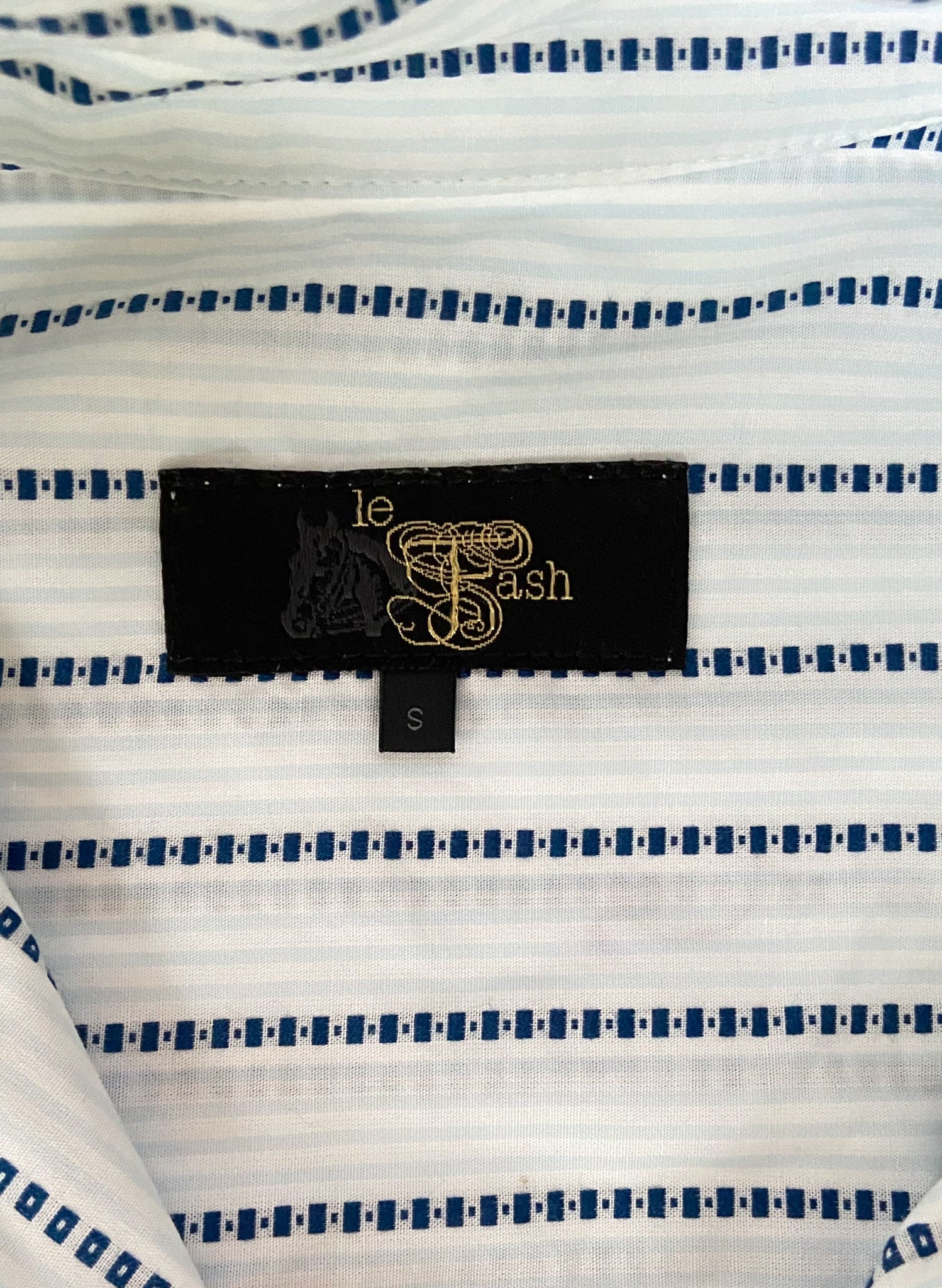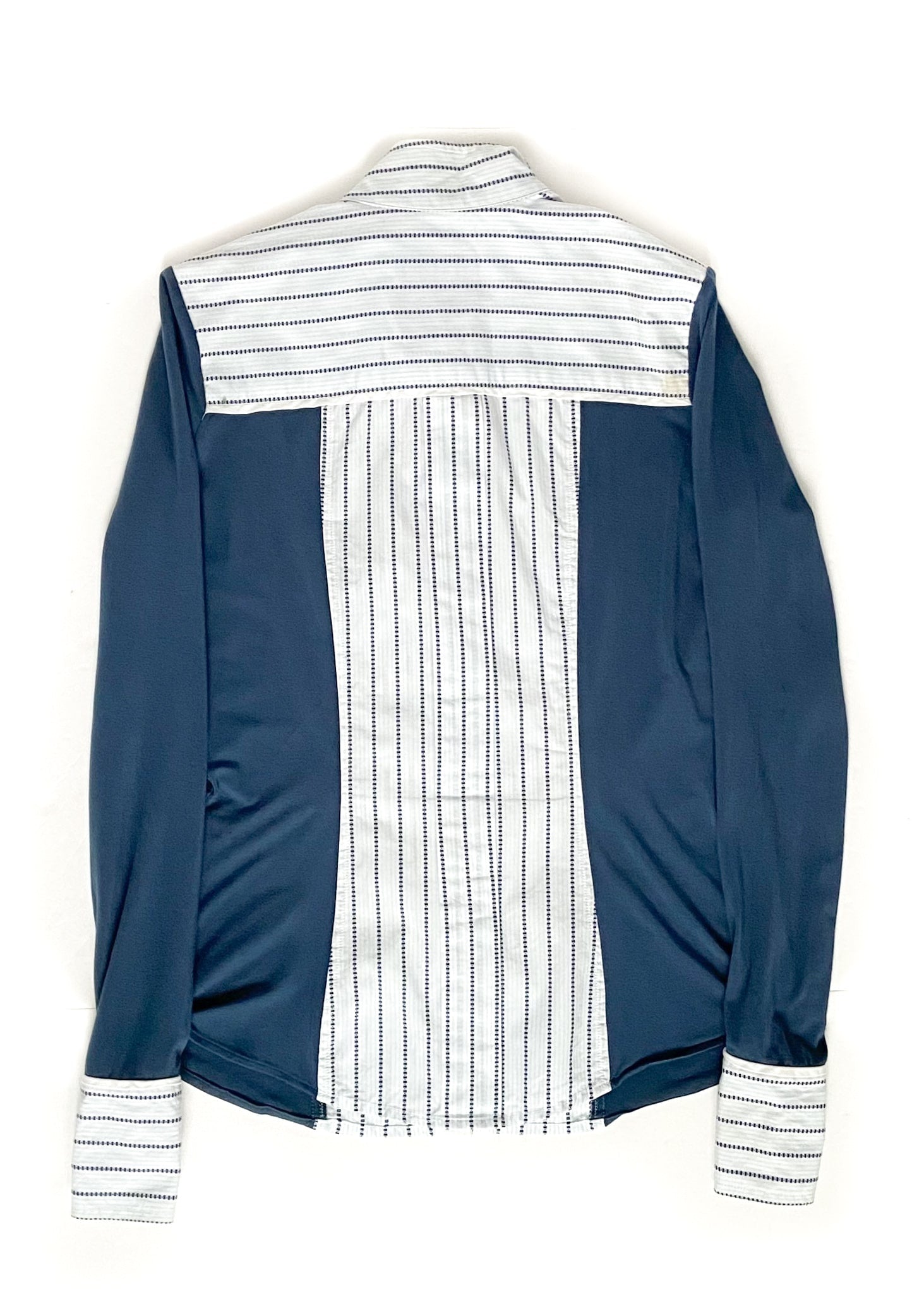 Gorgeous Le Fash show shirt. Jersey like blue material, with striped front, and a magnetic collar. High quality shirt for the show ring!