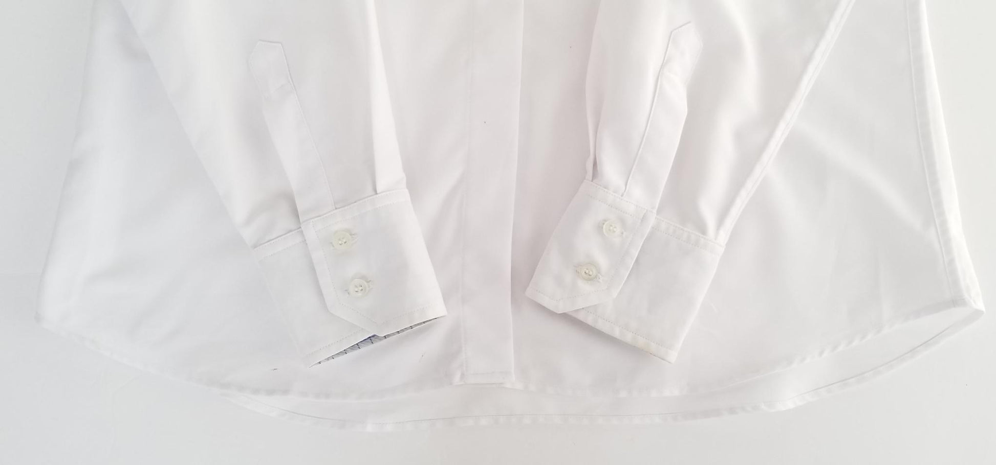 Quality made, crisp white Marigold show shirt. Button up with snap collar. Blue check design under collar. Looks beautiful under any show jacket.