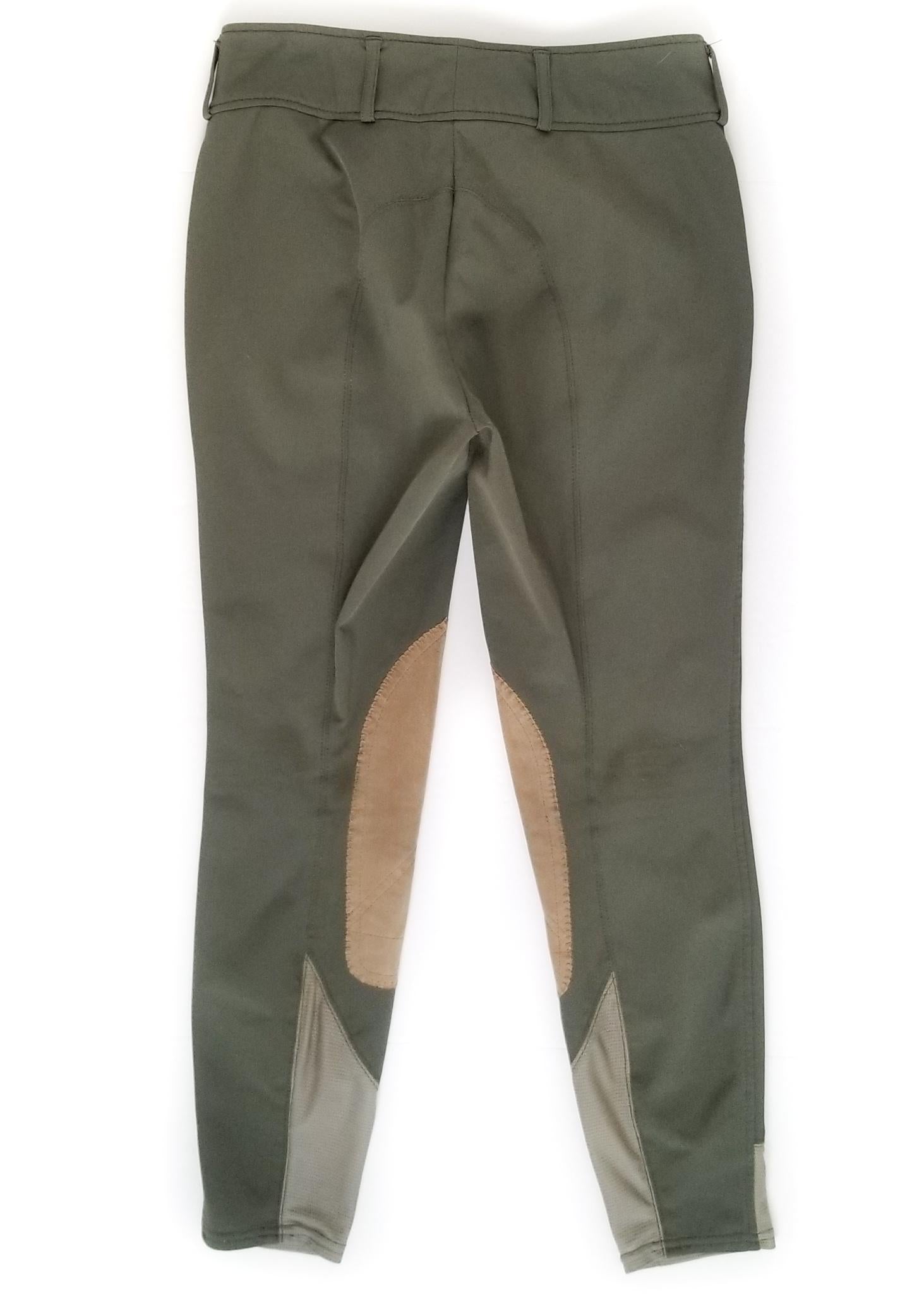 Beautiful natural rise breeches. Euro seat with a classic tan knee patch. Mesh bottoms allow for extra comfort.