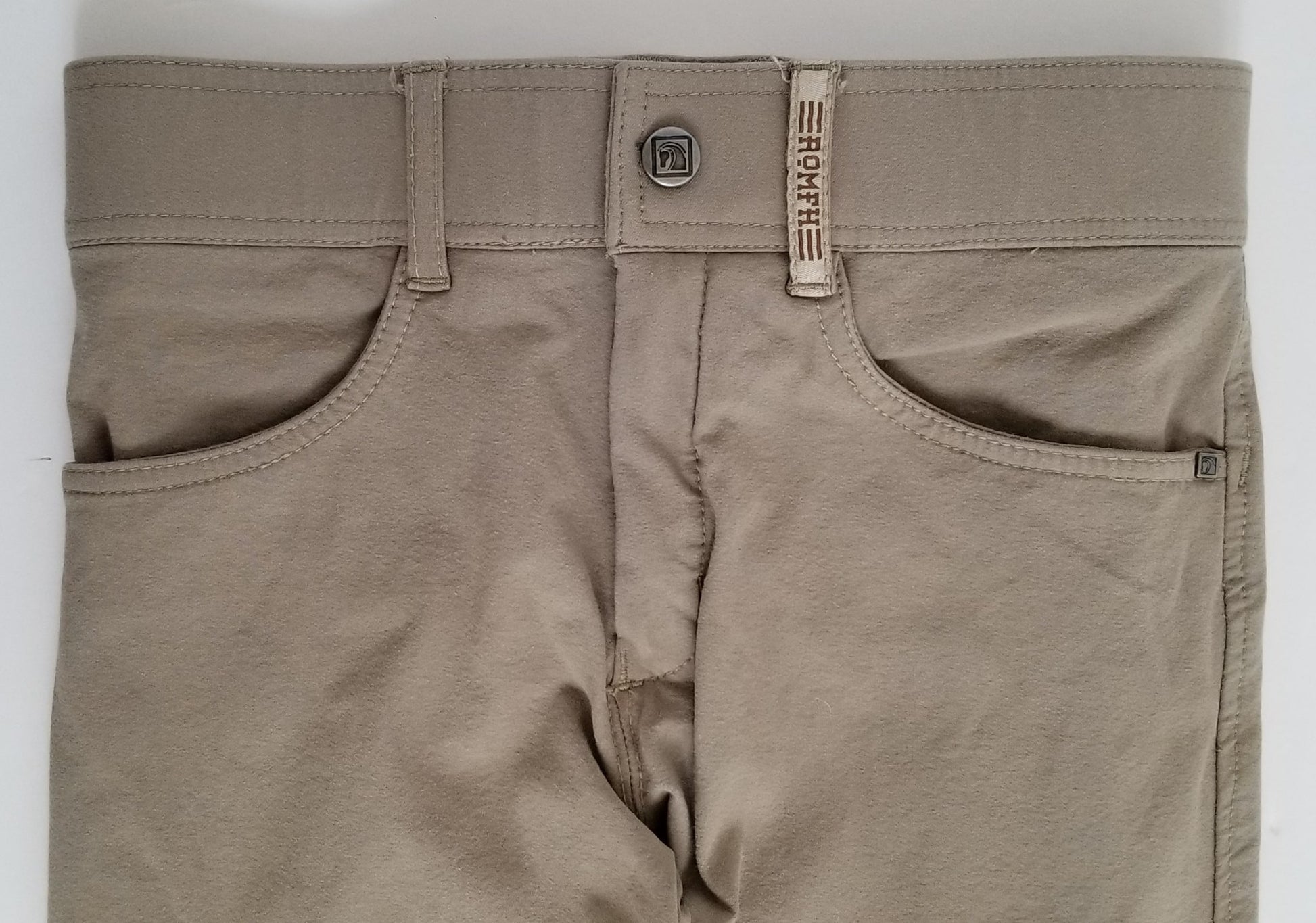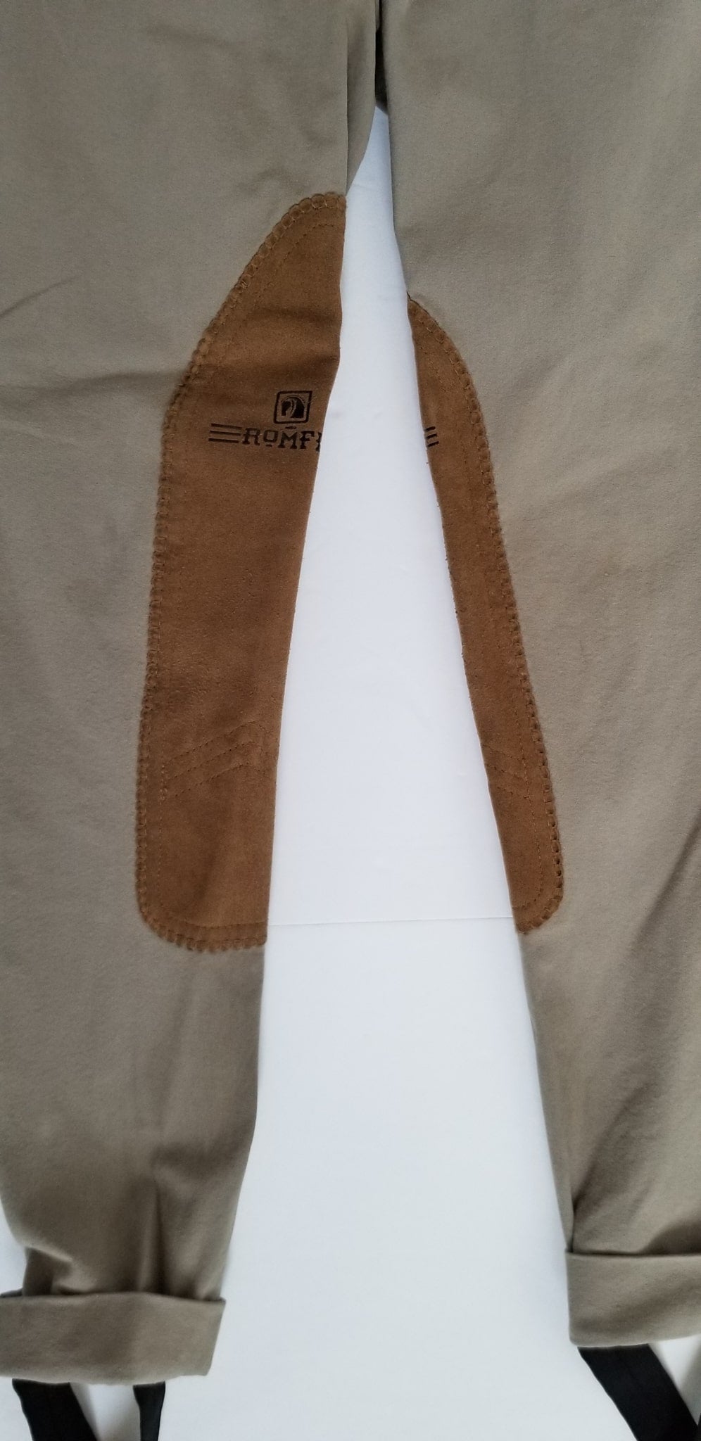 Front zip jodhpurs made with stretchy fabric and heavy duty knee patches.