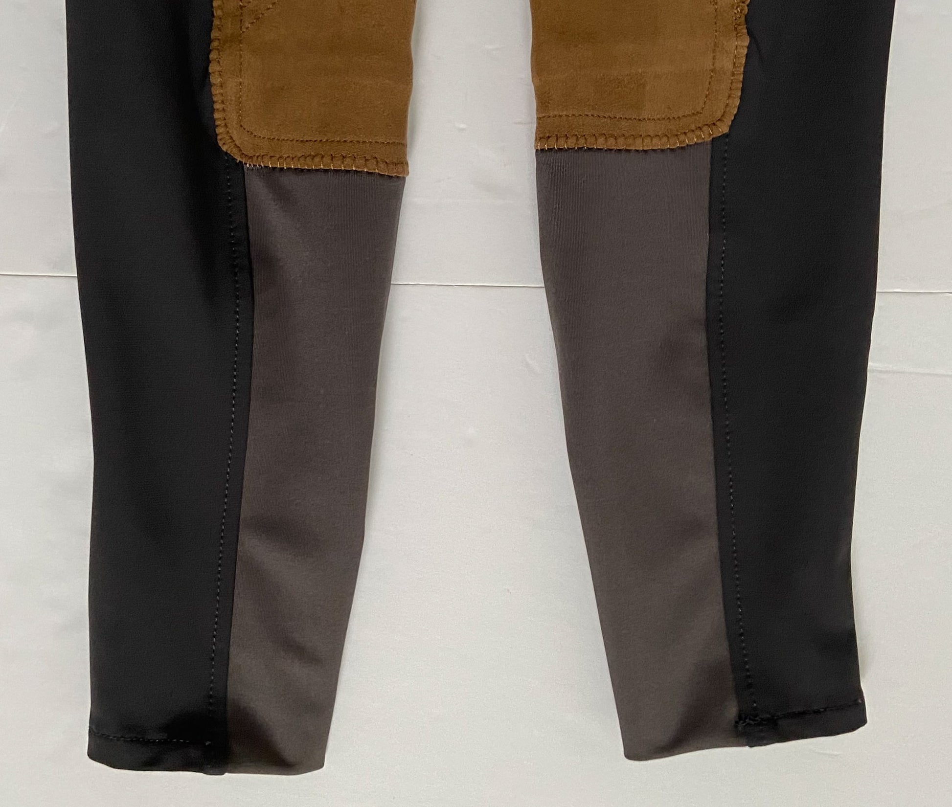 Classic breeches that feature tan suede knee patches as well as sock bottoms.