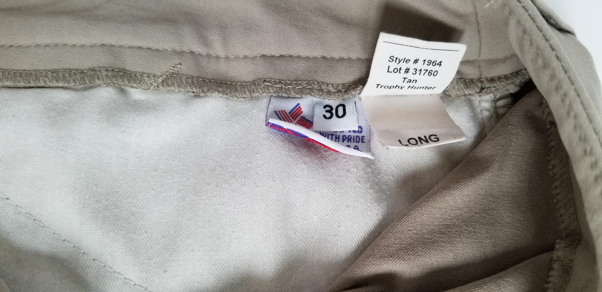 Condition: Loved. Stain on upper right thigh and stain under left knee patch (covered by boot). Little bit of pilling on knees. Two small pulls on right upper thigh/butt. Still show quality - good pair of backup breeches!