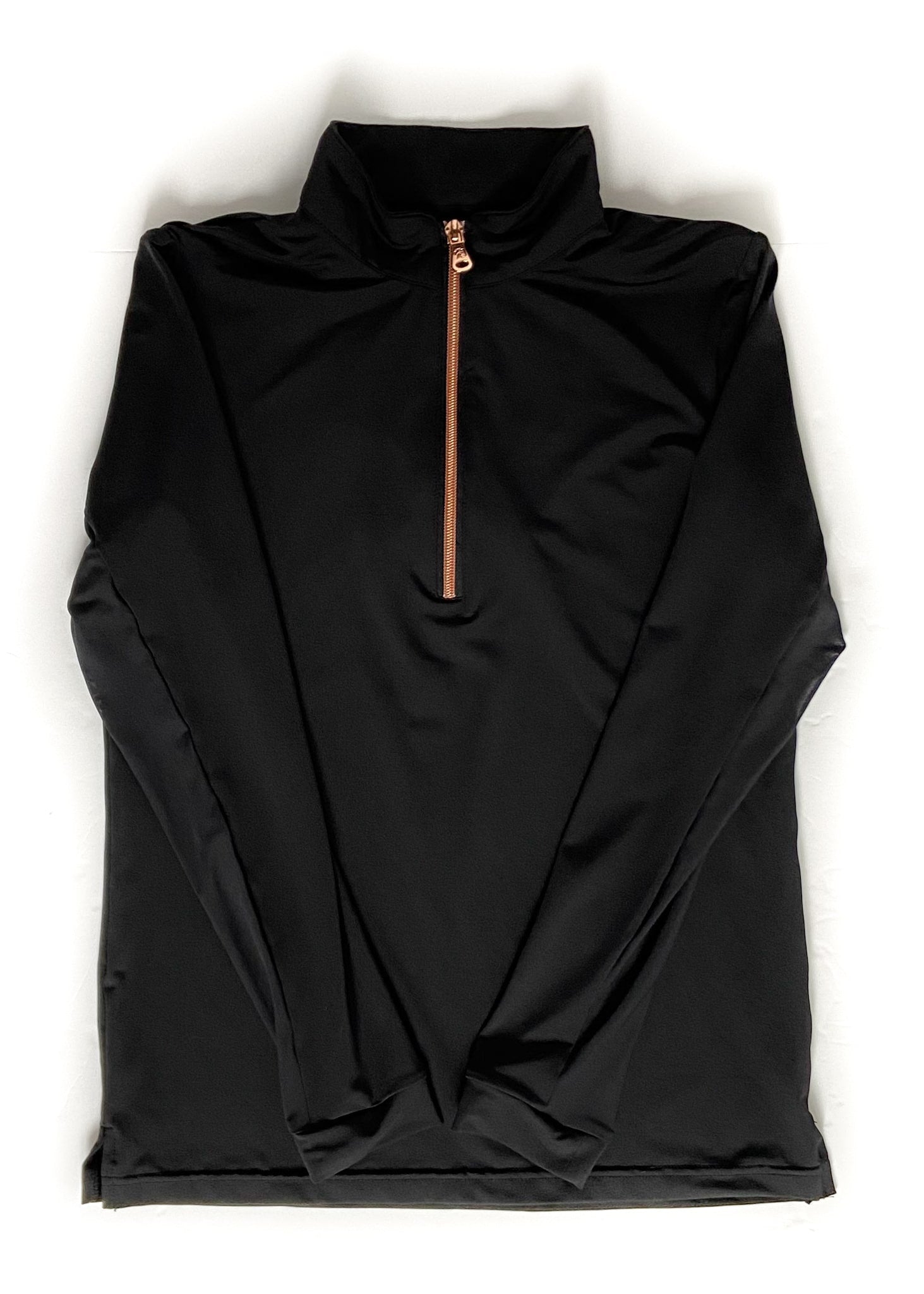 Stunning sun shirt that features rose gold accents in the zipper and logo.