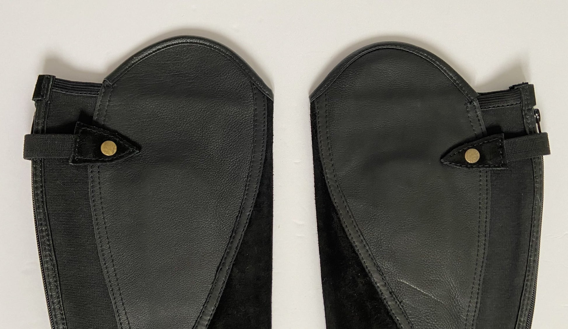 Stylish suede half chaps with leather upper.