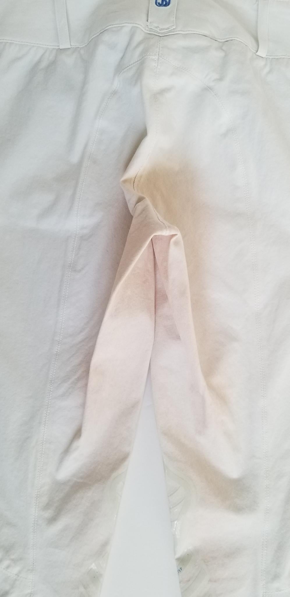 Condition: Well Loved. Saddle staining. Would be suitable as a back up pair of show breeches to wear on those poor weather days.