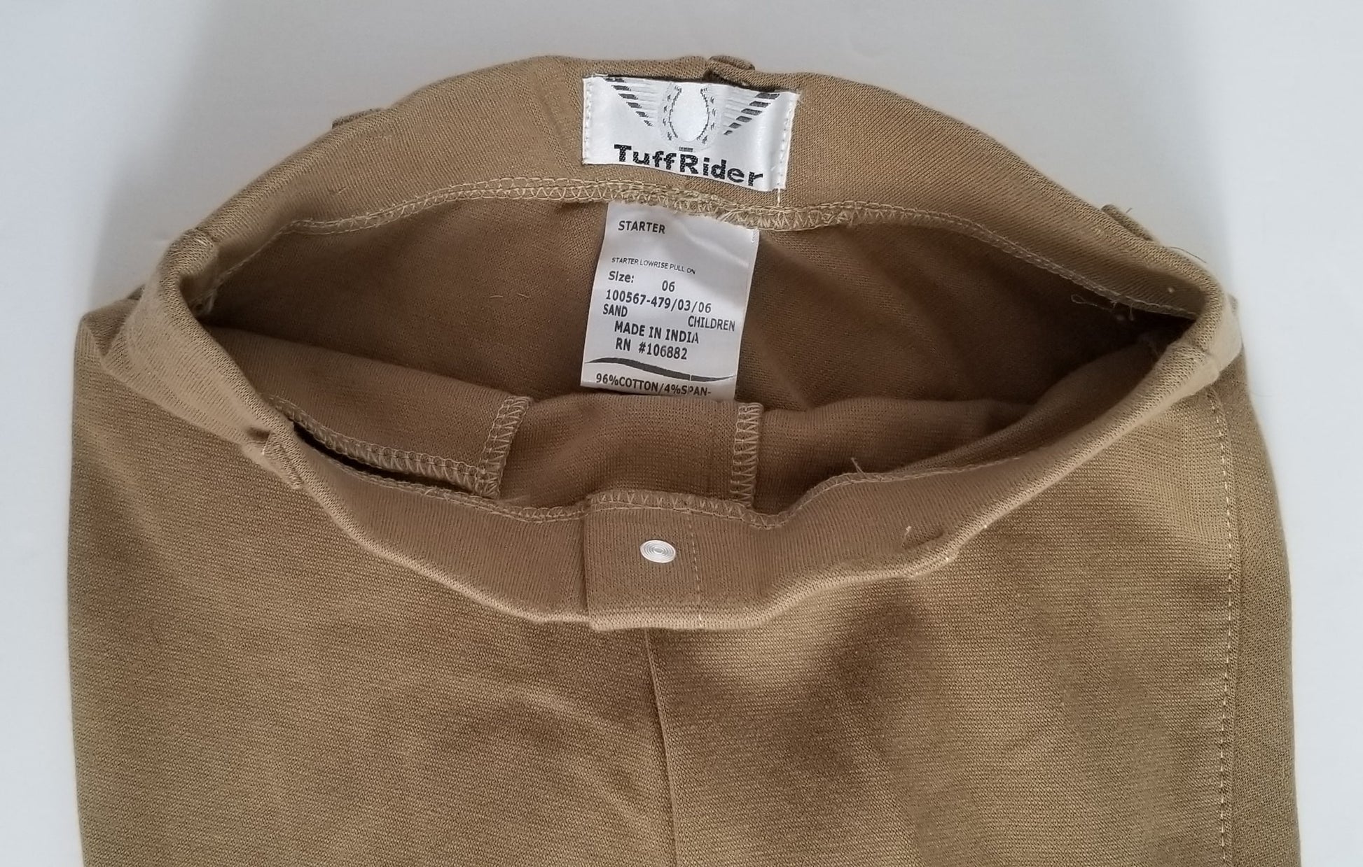 TuffRider Children's Starter Lowrise Pull-On Knee Patch Breeches - Tan - Youth 6