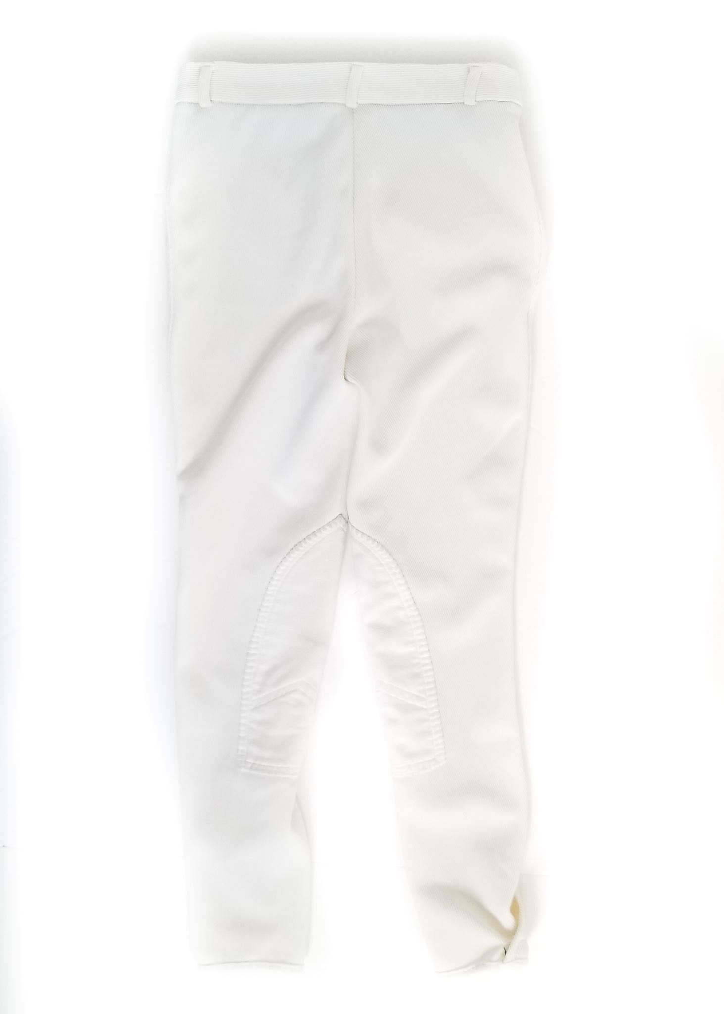 Quality ribbed breeches that feature suede knee patches and velcro bottoms.