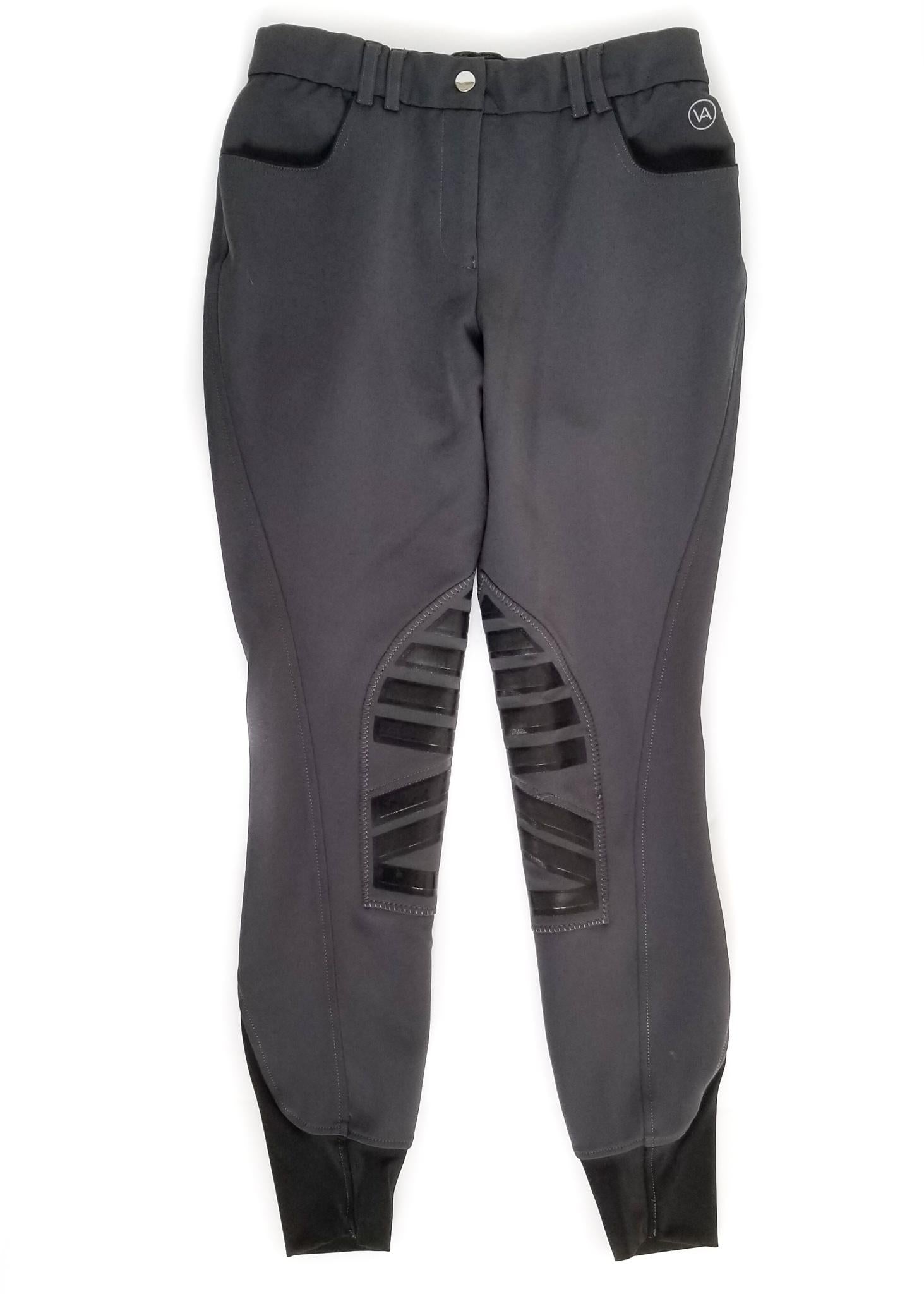 Gorgeous Vision Apparel breeches (Canadian company!). Made with stretchy fabric, these breeches are extra flattering. Silicone knee patch and silicone on the inner waste band. Faux pockets on butt for added detail. Sock bottom.